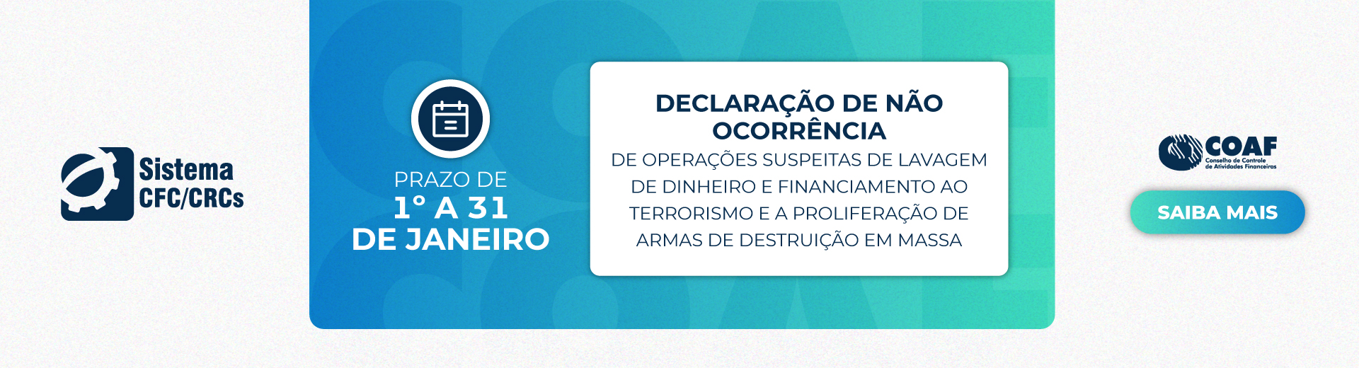 Está aberto o prazo para encaminhar ao Conselho Federal de Contabilidade (CFC) a Declaração de Não Ocorrência de Operações Suspeitas. Esta medida, estabelecida pelo art. 11, inciso III, da Lei n.º 9.613/1998, é destinada a todos os profissionais responsáveis técnicos e organizações contábeis, atuantes nas áreas pública e privada, e tem como objetivo fortalecer a segurança; prevenir a lavagem de dinheiro e o financiamento ao terrorismo; e a proliferação de armas de destruição em massa.