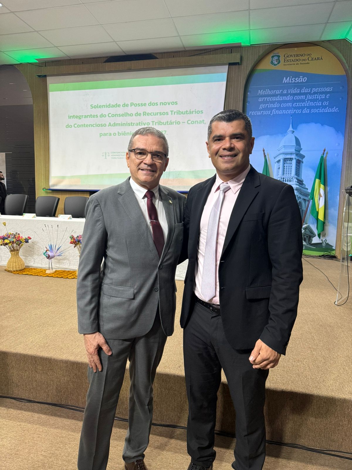 O presidente do Conselho Regional de Contabilidade do Ceará (CRCCE), Rondinelly Coelho, participou, nesta segunda-feira (2), da Solenidade de Posse dos novos integrantes do Conselho de Recursos Tributários do Contencioso Administrativo Tributário (Conat) para o biênio 2026/2027, ocasião em que tomou posse como novo presidente do Conat o contador Manoel Marcelo Marques Neto, em cerimônia realizada na Secretaria da Fazenda do Estado do Ceará (Sefaz-CE).