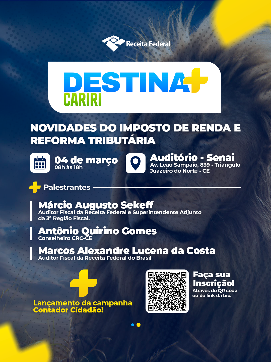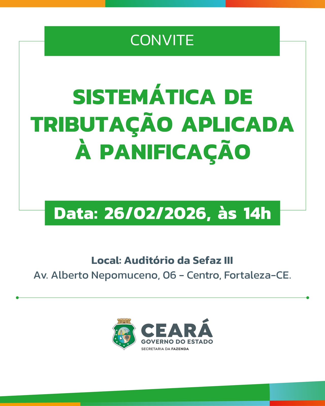A Reforma Tributária representa um dos momentos mais relevantes para a profissão contábil nos últimos anos, exigindo atualização técnica e posicionamento estratégico diante das mudanças que já estão impactando o mercado. Com esse objetivo, será realizado o Fórum Nacional da Reforma Tributária – RT360º, nos dias 03 e 04 de abril, em Fortaleza, reunindo os maiores especialistas e profissionais de todo o país para discutir, de forma prática e estratégica, os principais impactos e oportunidades decorrentes da nova realidade tributária. Informamos que o 1º lote de inscrições será encerrado em breve, com posterior reajuste de valor. Profissionais devidamente registrados e regulares junto ao Conselho Regional de Contabilidade do Ceará contam com 20% de desconto em qualquer categoria de ingresso. Essa é uma oportunidade relevante para atualização técnica, ampliação de networking qualificado e preparação para os desafios da transição tributária. Para garantir sua participação com a condição especial, acesse: QUERO GARANTIR MINHA VAGA NO 1° LOTE COM DESCONTO ________________________________________ Para realizar a inscrição, envie os seguintes dados (nome, empresa, telefone para contato e e-mail) para: erlaine.lima@sefaz.ce.gov.br ________________________________________ As inscrições poderão ser realizadas através do link abaixo .