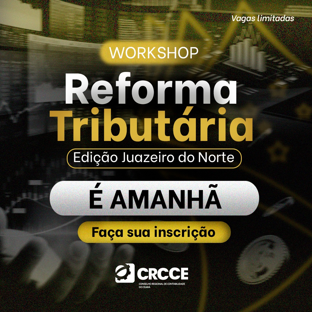 Aproveite esta oportunidade de participar do Workshop da Reforma Tributária – Edição Juazeiro do Norte. Prepare-se para atualizações essenciais e discussões impactantes sobre o futuro da contabilidade.