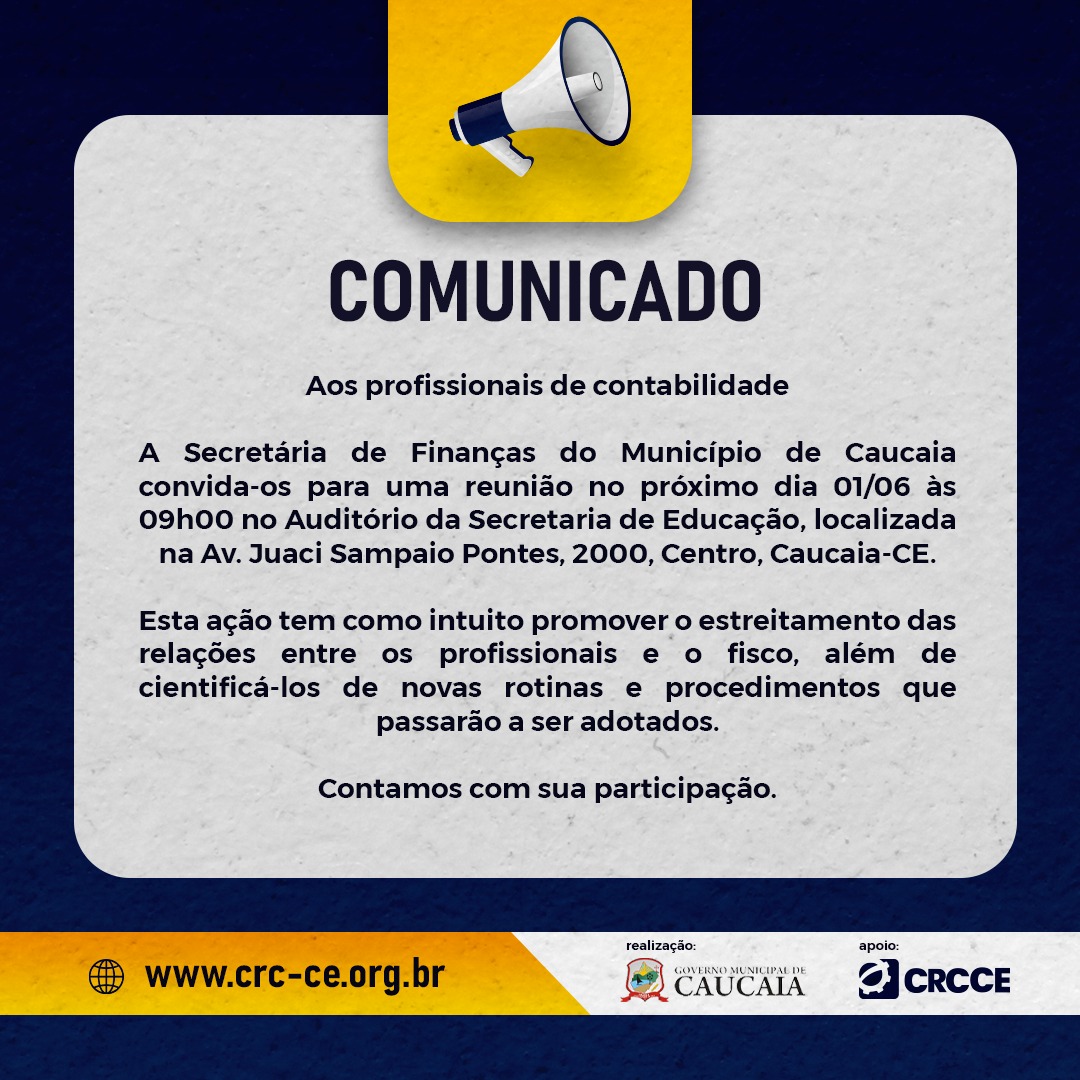 Convite Reunião dos Profissionais da Contabilidade na Secretaria de Finanças de Caucaia